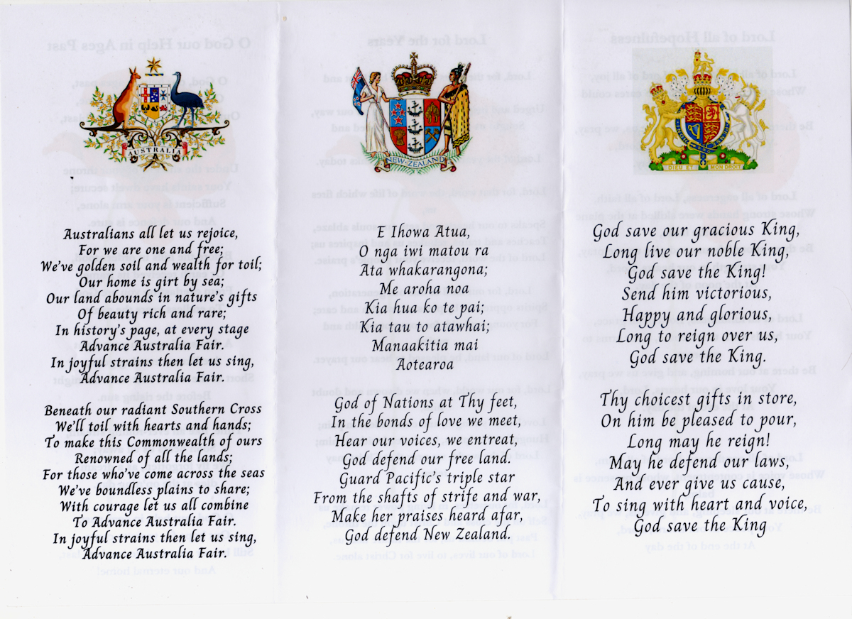 Readings were given by: Mr Damian Walsh - Nation Director, Britian-Australia Society Lt Aaron Martin - New Zealand High Commission/New Zealand Army Lt Commander Danica Ellicott - Australian High Commission/Royal Australian Navy