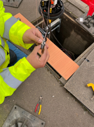 A day out with BT engineer installing fibre optic cables connecting Friday Bridge with Somers Road exchange in Wisbech. There were 15 trays each holding 36 fibres giving at least 540 new lines. Amazing workmanship.