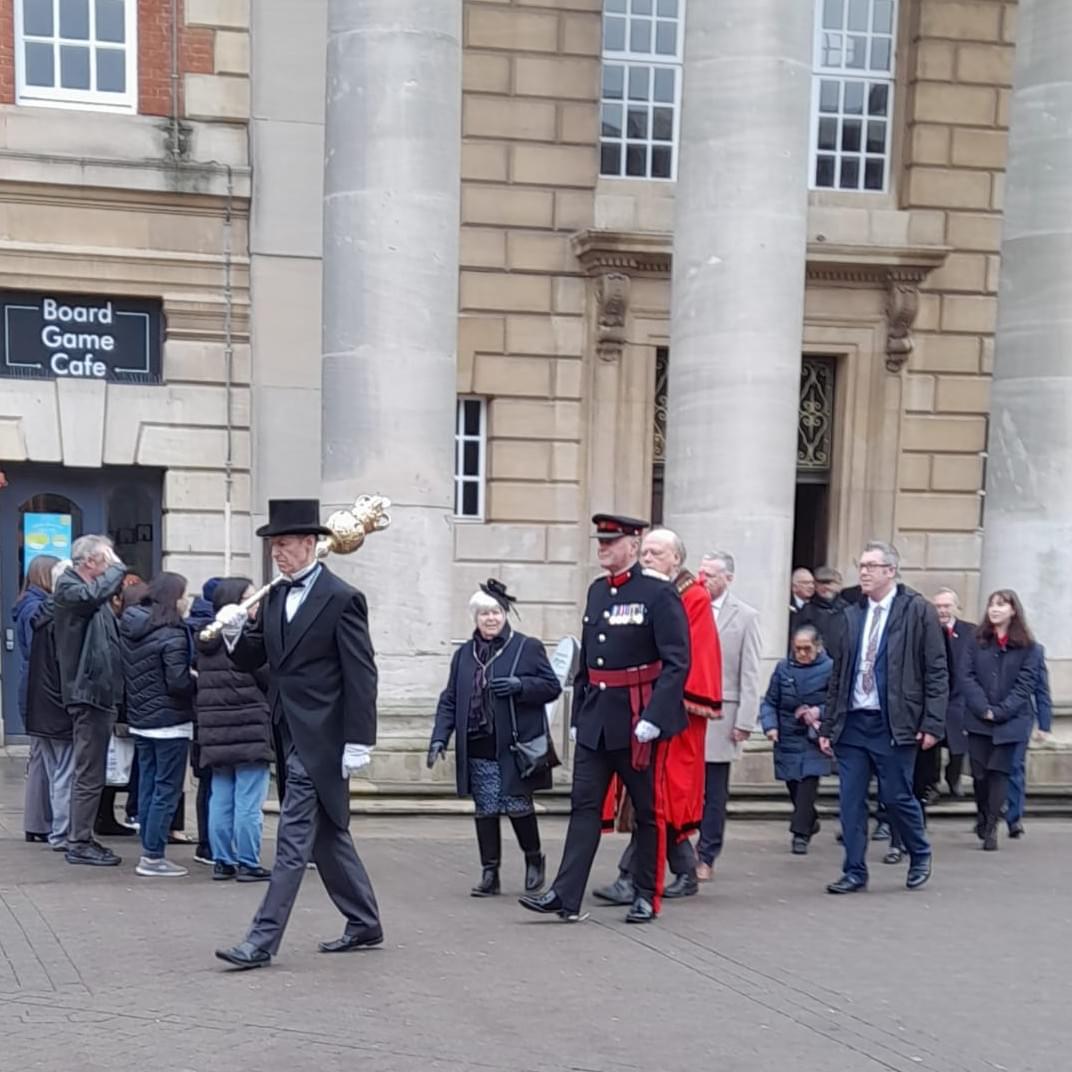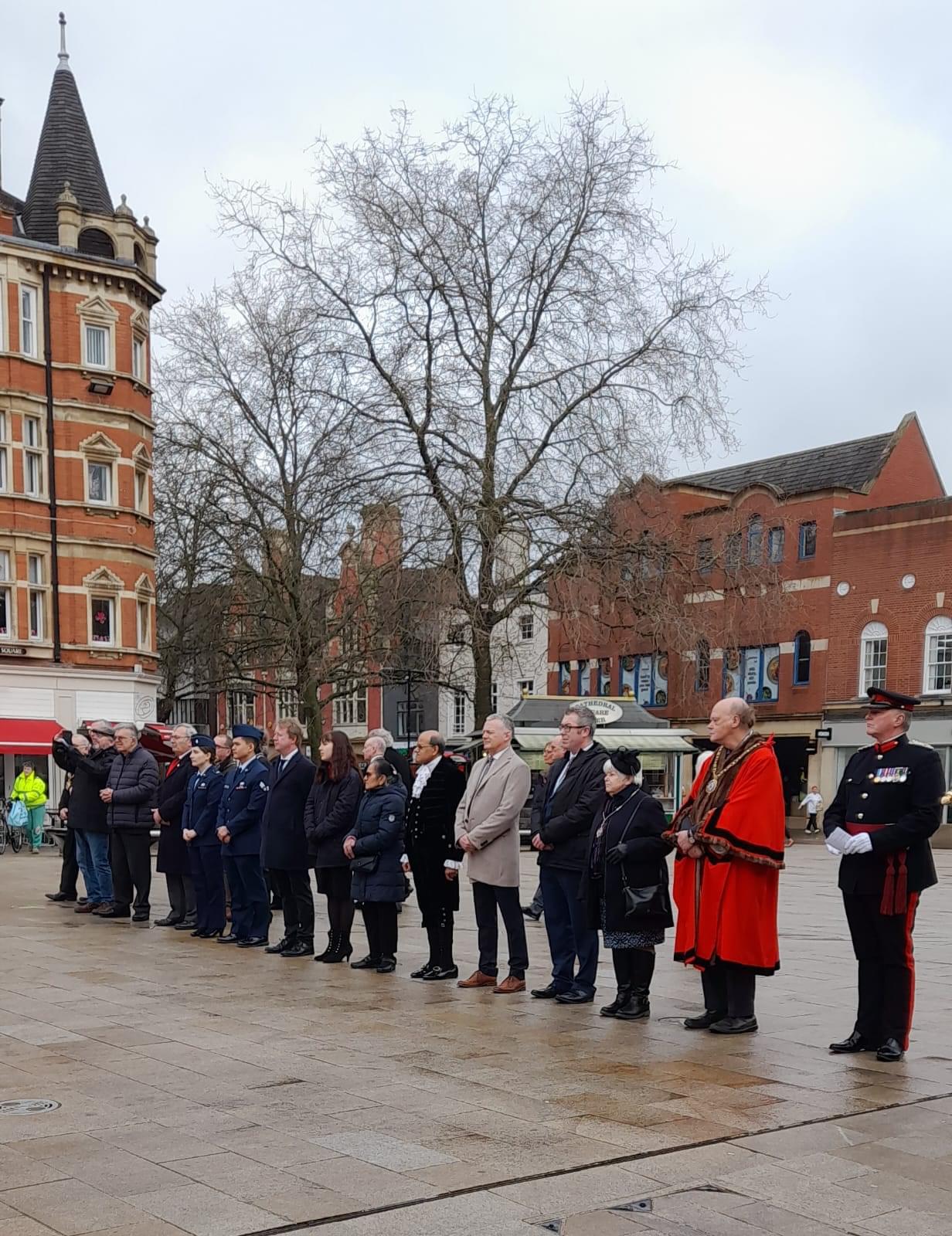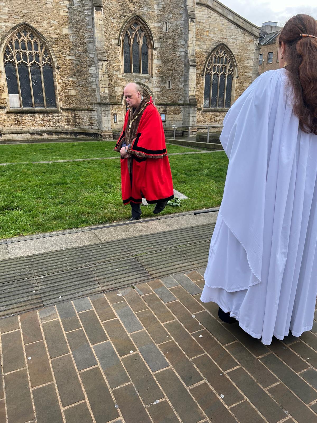 The Mayor of Peterborough, Councillor Nick Sandford, headed a procession of dignitaries from the Town Hall to St John’s Church for the commemoration, pausing at the Guildhall on Cathedral Square to watch a moving display of interpretive dance performed by pupils from St John Fisher Catholic High School.