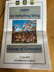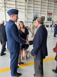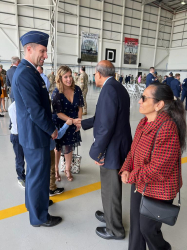 Presiding Officer - Major General Derek C. France who is Commander 3rd Air Force, Ramstein Air Force Base, Germany. Outgoing Commander - Gene A. Jacobus Incomming Commander - Ryan J. Garlow was Vice-commander of 60th Air Mobility Wing Travis Air Force Base, California