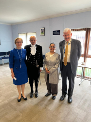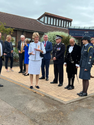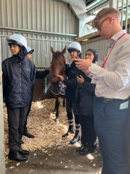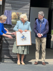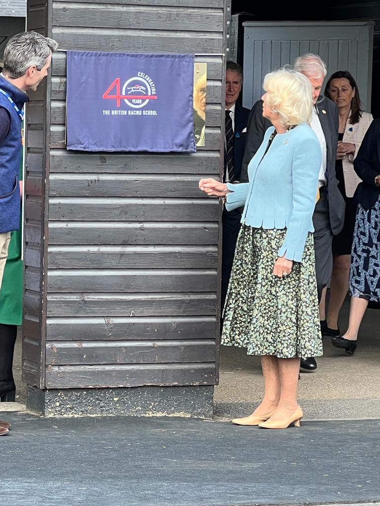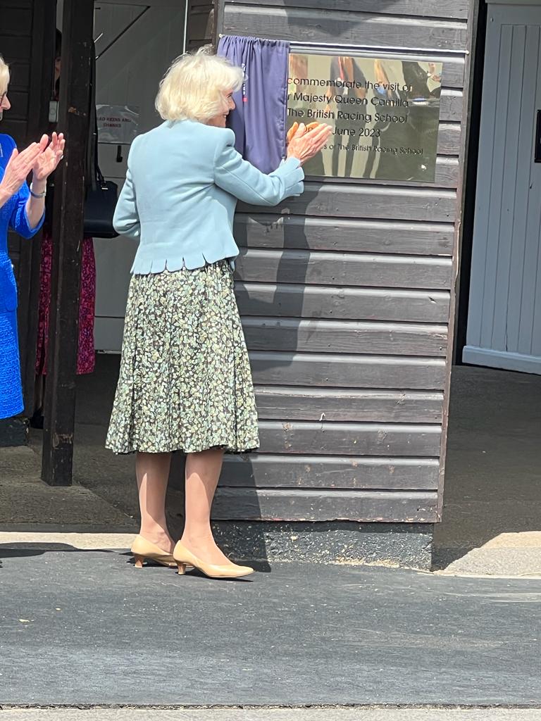 In one of her first official engagements since the Coronation, Queen Camilla visited the prestigious British Racing School and museum in Newmarket, Suffolk. Having been opened by the then Prince of Wales in November 1983, the Queen returned to the British Racing School in Newmarket to honour its 40th anniversary. Rounding off her visit at the school, staff and trainees lined the main yard as the Queen unveiled a plaque marking the 40th anniversary of the school. Queen Camilla was also handed a painting depicting two racing horses by trainee, Sophie Bees.