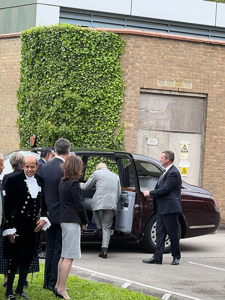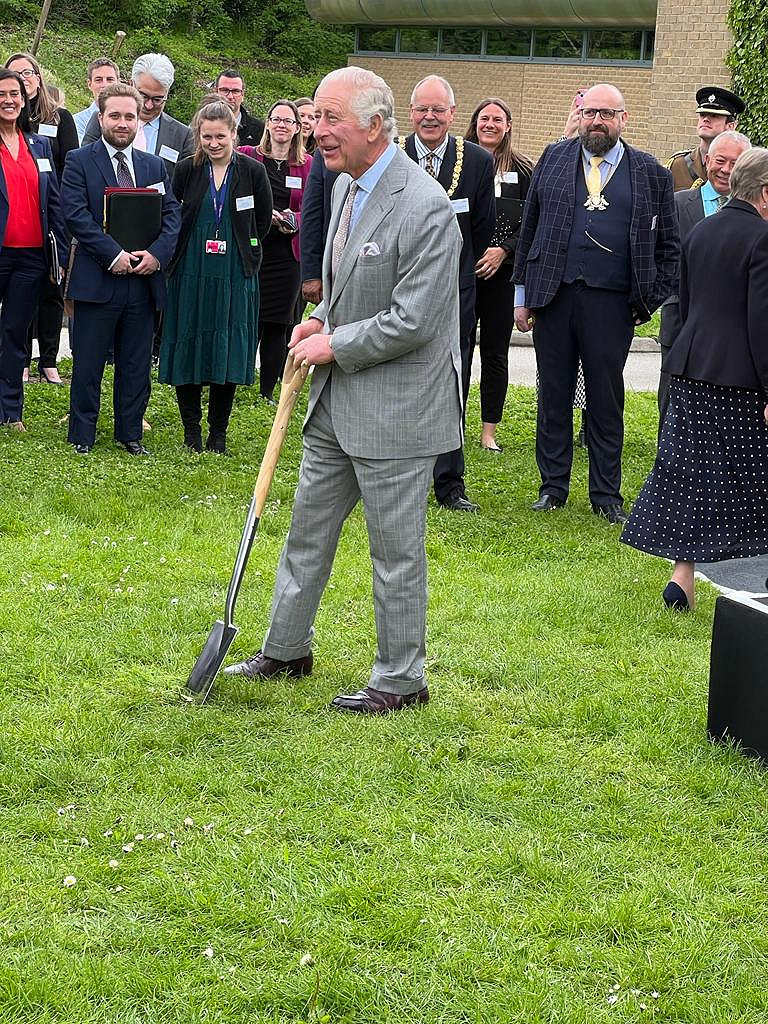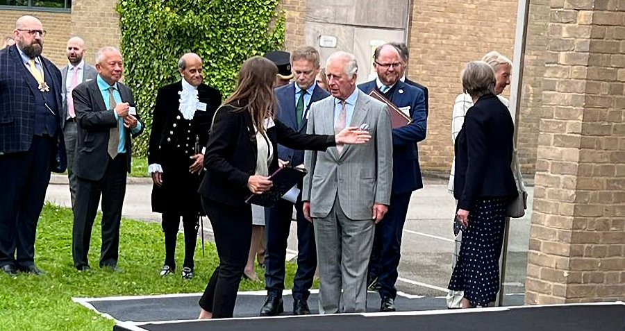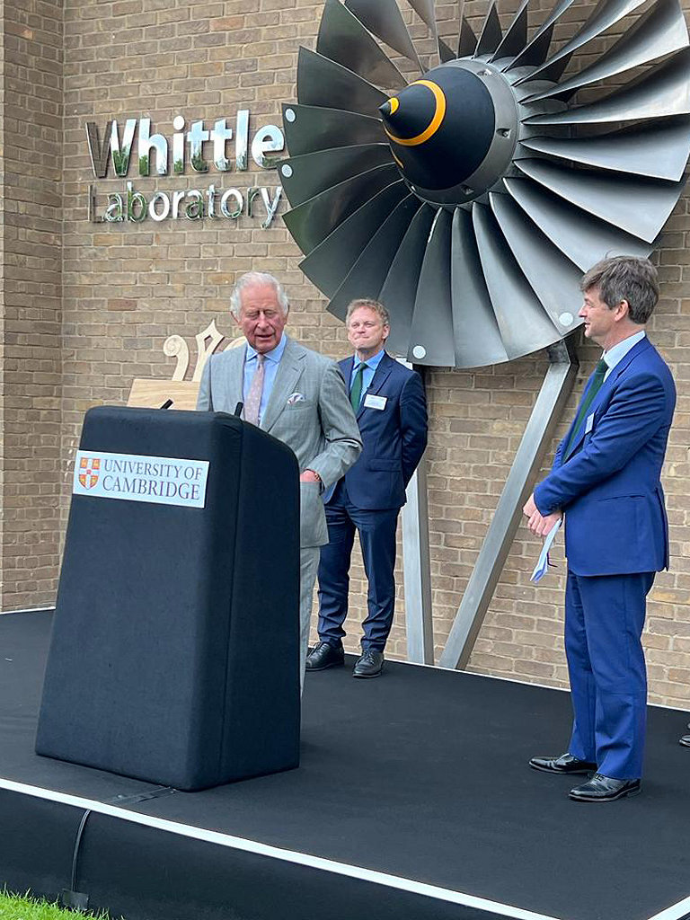 The King toured Cambridge University's Whittle Laboratory which recently secured funding for the project. The lab will aim to halve the amount of time it takes to develop technologies aiming to achieve net zero aviation. The King performed the ceremonial breaking of the ground. He also unveiled a plaque and toured the existing laboratory.