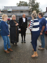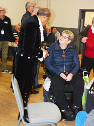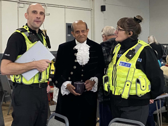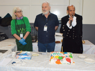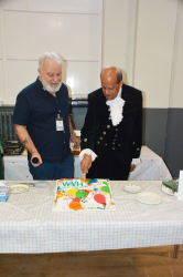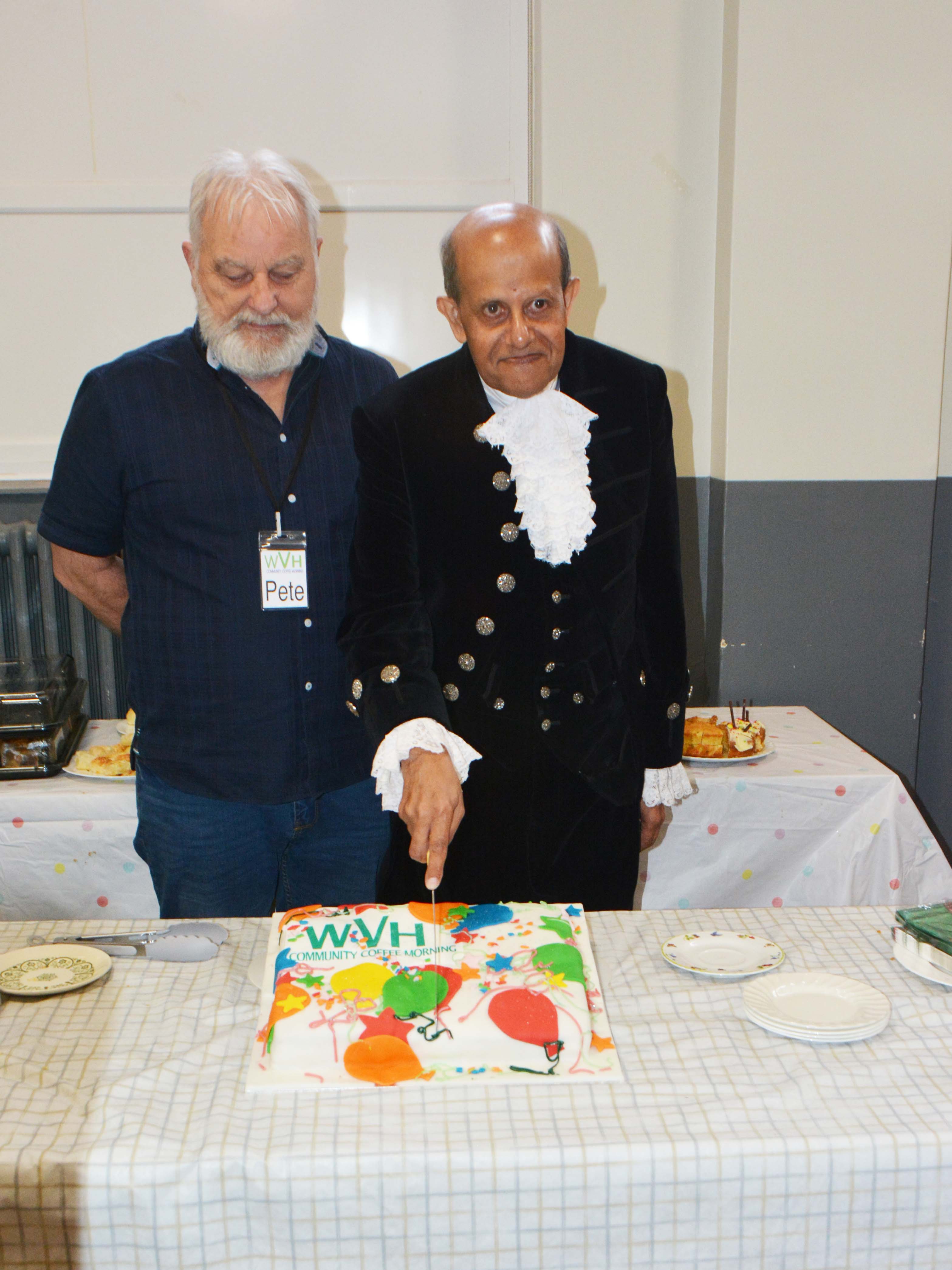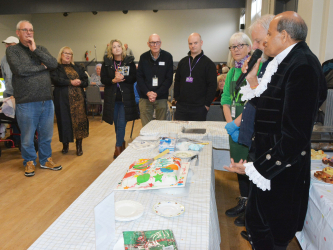 Two officers from the Fenland local policing team also popped in for a cuppa and cake. A woman, described as “our little mascot” Julie Bush from Tesco arrived with a bag of goodies. The High Sheriff of Cambridgeshire had the honour of cutting the special birthday cake before touring the hall and speaking to many of the guests.