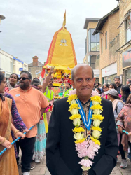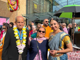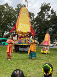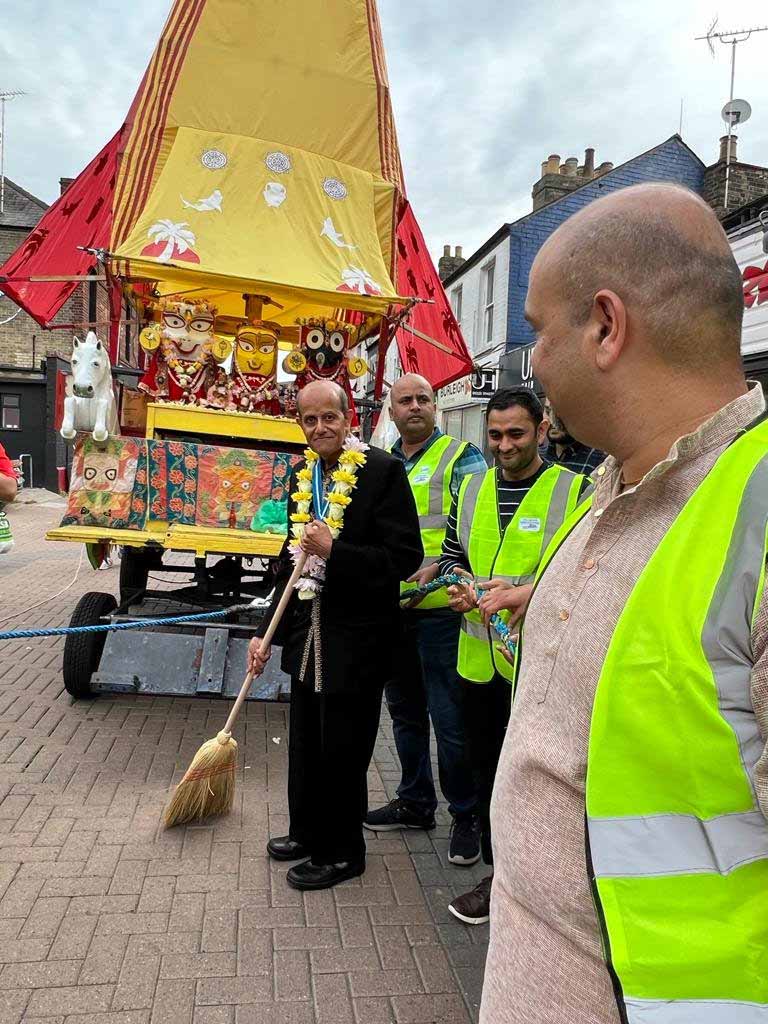 As per Rathayatra Tradition the King of Orissa (In India) usually sweeps the floor in front of the chariot as a mark of respect to the Supreme. The High Sheriff accepted to Honour this tradition as a representative of the King. This traditional act kicked off the Pulling of the Chariot by the public. The Procession started at Burleigh street, headed towards Grafton Centre and then down towards New-Square Park where tents were placed and food was served to all attending.